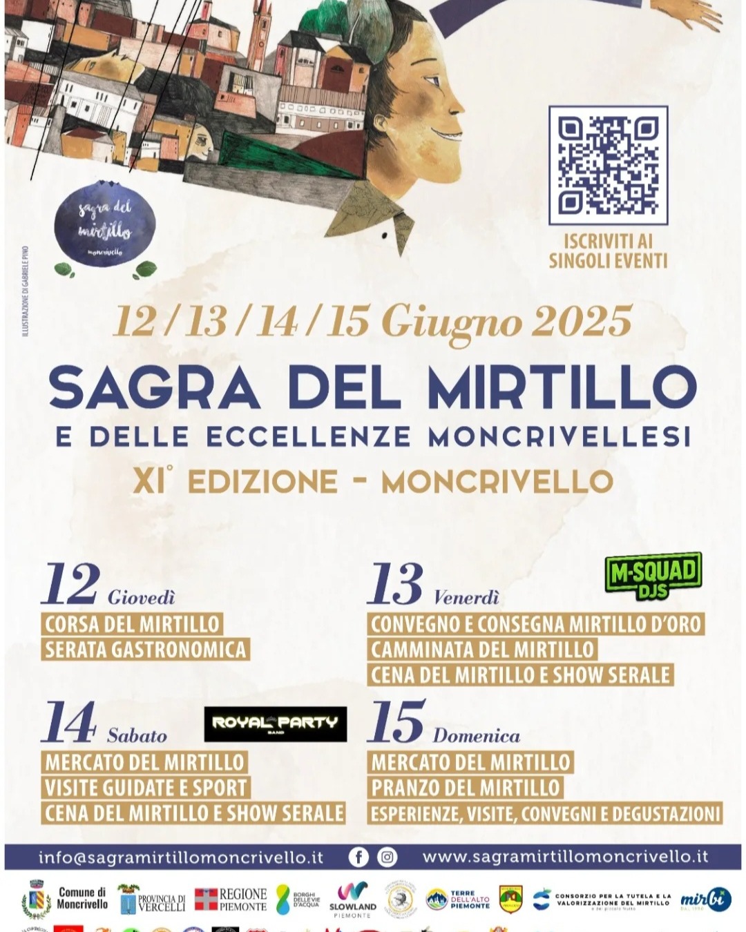 @sagramirtillomoncrivello ๐Ÿซ ๐ŸŽ‰ ๐‘บ๐‘จ๐‘ฎ๐‘น๐‘จ ๐‘ซ๐‘ฌ๐‘ณ ๐‘ด๐‘ฐ๐‘น๐‘ป๐‘ฐ๐‘ณ๐‘ณ๐‘ถ 2025 ๐Ÿ“ Moncrivello (VC) | ๐Ÿ“… 12โ€“15 Giugno ๐Ÿ‡ Gusto, musica, tradizione e natura per tutta la famiglia! ๐Ÿ‘‰ Ecco il programma dettagliato in breve: ๐Ÿด ๐‘ช๐‘ฐ๐‘ฉ๐‘ถ ๐‘ฌ ๐‘บ๐‘จ๐‘ท๐‘ถ๐‘น๐‘ฐ โ€ข Pranzi e cene a tema mirtillo ๐Ÿ โ€ข Stand gastronomici e street food โ€ข Degustazioni in vigna e al Giardino delle Api โ€ข Mercato dei prodotti tipici e artigianali ๐Ÿƒโ€โ™‚๏ธ ๐‘บ๐‘ท๐‘ถ๐‘น๐‘ป & ๐‘ฉ๐‘ฌ๐‘ต๐‘ฌ๐‘บ๐‘บ๐‘ฌ๐‘น๐‘ฌ โ€ข Corsa e camminata del mirtillo โ€ข Yoga & Pilates nella natura โ€ข Pesca al lago, tornei sportivi, beach volley ๐ŸŽถ ๐‘ด๐‘ผ๐‘บ๐‘ฐ๐‘ช๐‘จ ๐‘ฌ ๐‘ซ๐‘ฐ๐‘ฝ๐‘ฌ๐‘น๐‘ป๐‘ฐ๐‘ด๐‘ฌ๐‘ต๐‘ป๐‘ถ โ€ข DJ set in piazza ๐ŸŽง โ€ข Spettacoli live con band โ€ข Serate danzanti e cocktail sotto le stelle ๐Ÿน ๐Ÿง’ ๐‘ญ๐‘จ๐‘ด๐‘ฐ๐‘ฎ๐‘ณ๐‘ฐ๐‘ฌ & ๐‘ฉ๐‘จ๐‘ด๐‘ฉ๐‘ฐ๐‘ต๐‘ฐ โ€ข Animazione e laboratori โ€ข Visite guidate al castello e ai vigneti โ€ข Attivitร  educative nella natura ๐Ÿ“ฟ ๐‘บ๐‘ท๐‘ฐ๐‘น๐‘ฐ๐‘ป๐‘ผ๐‘จ๐‘ณ๐‘ฐ๐‘ป๐‘จฬ€ & ๐‘ป๐‘น๐‘จ๐‘ซ๐‘ฐ๐’๐‘ฐ๐‘ถ๐‘ต๐‘ฌ โ€ข Consegna del Mirtillo dโ€™Oro โ€ข Convegni e incontri culturali โ€ข 15 giugno: Giubileo degli Ammalati e della Sanitร  ๐Ÿ’œ ๐‘ฐ๐‘ต๐‘ญ๐‘ถ ๐‘ผ๐‘ป๐‘ฐ๐‘ณ๐‘ฐ ๐Ÿ“ฒ Programma completo e iscrizioni (sia per Visite Guidate in Castello che In vigna, scrivere a ๐’Š๐’๐’‡๐’@๐’”๐’‚๐’ˆ๐’“๐’‚๐’Ž๐’Š๐’“๐’•๐’Š๐’๐’๐’๐’Ž๐’๐’๐’„๐’“๐’Š๐’—๐’†๐’๐’๐’.๐’Š๐’• ): ๐ŸŒ sagramirtillomoncrivello.it ๐Ÿ“ง info@sagramirtillomoncrivello.it ๐Ÿ“ธ Seguici con #SagraDelMirtillo ๐Ÿซ Vi aspettiamo a Moncrivello per lโ€™estate piรน blu dellโ€™anno!